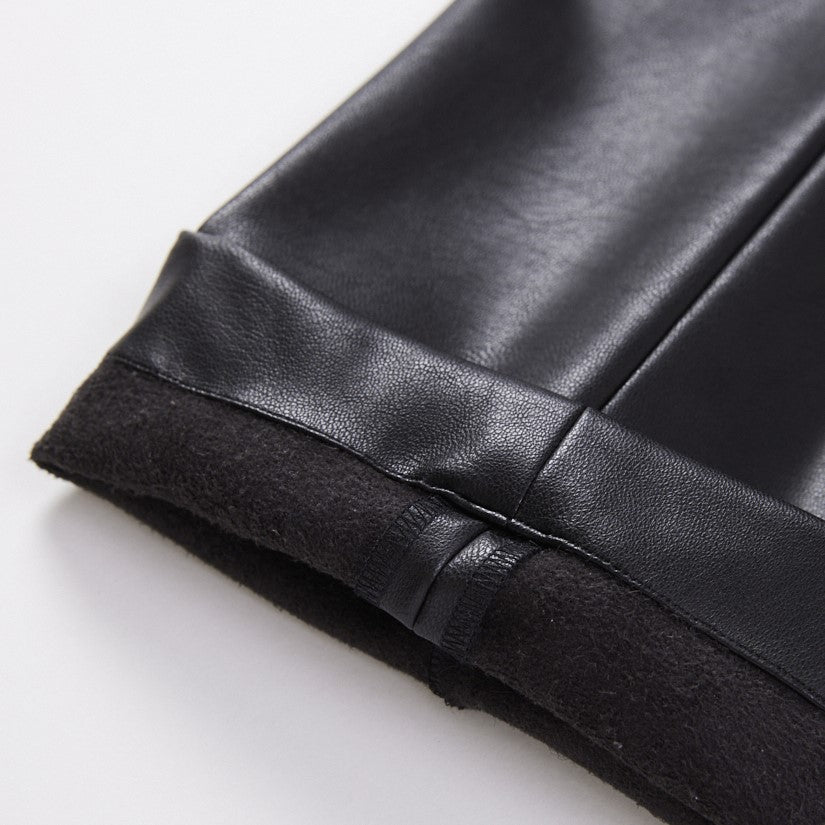 ・Really looks like real leather but soft touch, stretch and comfortable to wear. ・Backside is well brushed and feel good warmth and softness when wear. ・Due to coated fabric, NO dry cleaning and NO home ironing.