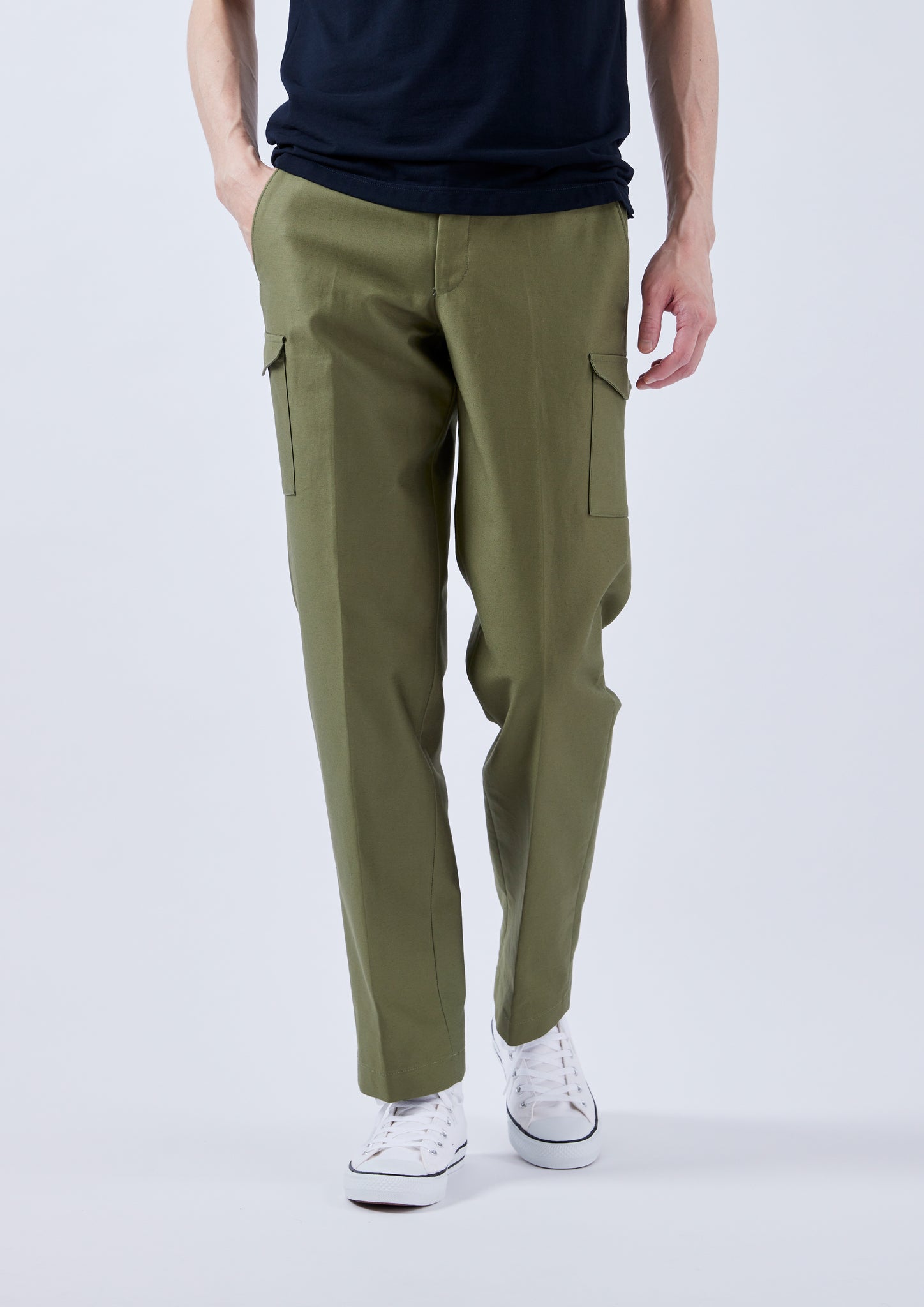 New semi-wide silhouette with high positioned cargo pocket.